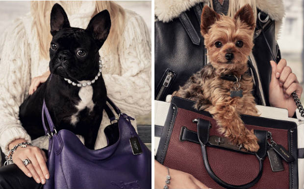 Em vez de modelos, a marca decidiu usar cãezinhos famosos para divulgar suas bolsas